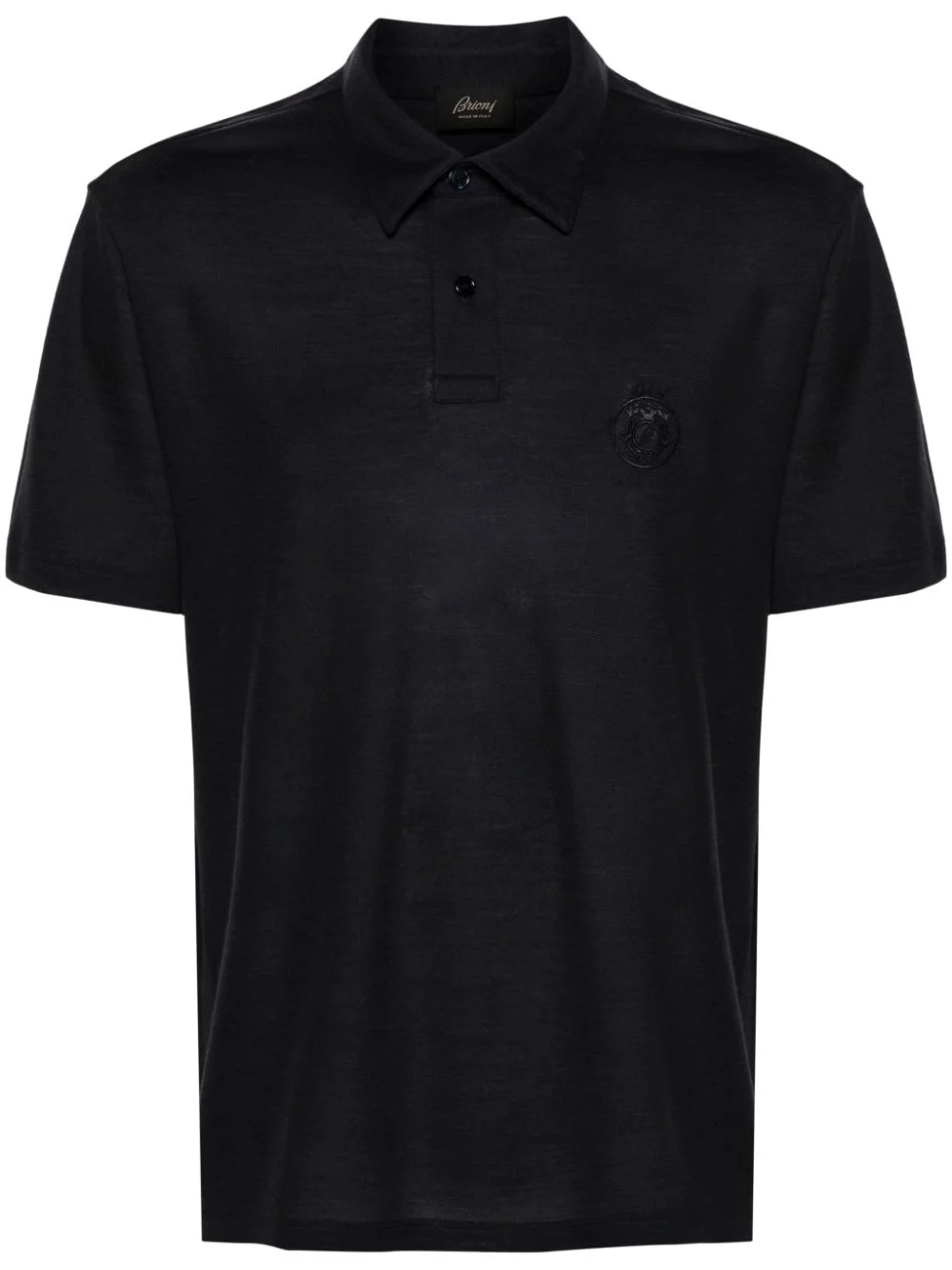 logo-embroidered wool polo shirt Highlights - Midnight blue - Wool - Jersey texture - Embroidered logo at the chest - Polo collar - Front button placket - Short sleeves - Short side slits - Straight hem Made in Italy Composition Wool 100% SIZE & FIT Model measurements Height 6 ft 2 in(1.87 m) Bust/Chest 38.18 in(97 cm) Hips 36.61 in(93 cm) Waist 29.13 in(74 cm) FittingInformation Designed for a regular fit, this polo shirt offers a comfortable loose fit throughout the body Made from a midweight non-stretch fabric, this piece offers minimal elasticity when worn This piece fits true to size – take your usual size