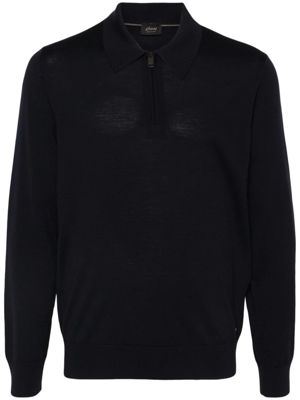 zip-fastening wool polo shirt Highlights - Navy blue - Wool - Fine knit - Logo plaque to the side - Short front zip fastening - Polo collar - Long sleeves - Ribbed cuffs and hem Made in Italy Composition Wool 100% SIZE & FIT Model measurements Height 6 ft 2 in(1.87 m) Bust/Chest 38.18 in(97 cm) Hips 36.61 in(93 cm) Waist 29.13 in(74 cm) FittingInformation Designed for a relaxed fit, this polo shirt offers comfort and movement Made with a midweight knit, this piece offers some stretch This piece fits true to size – take your usual size