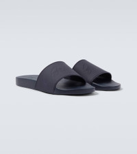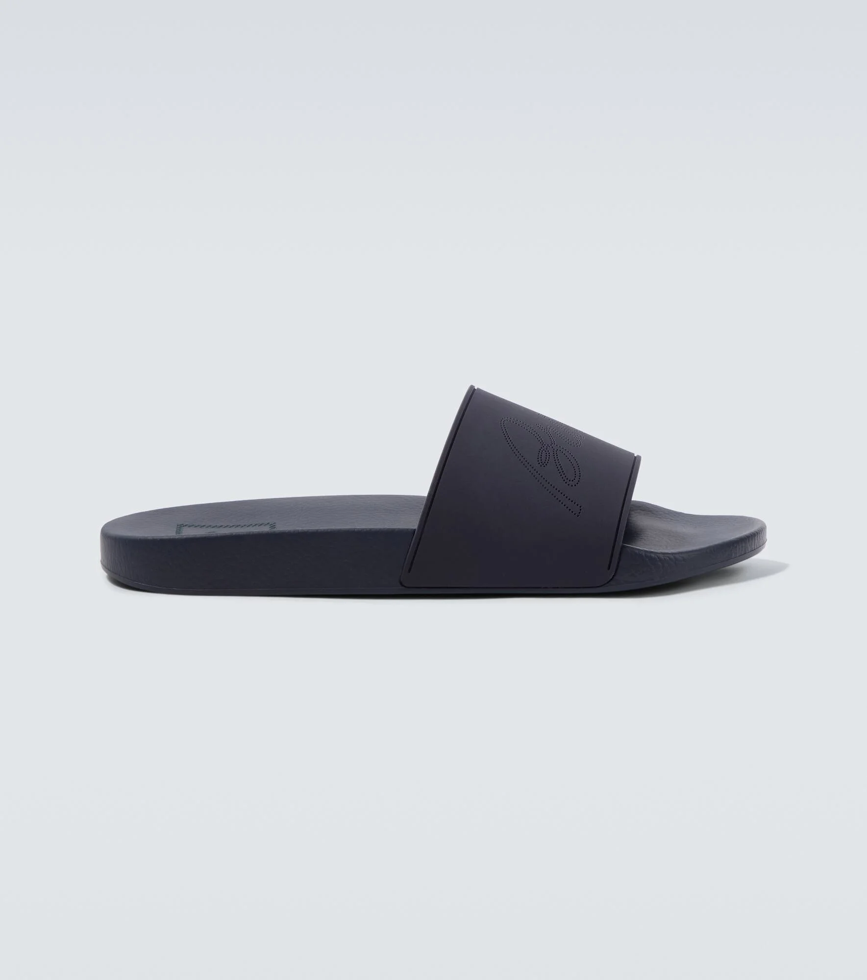 Step into style with these slides from Brioni. Made in Italy, the open-toed pair is adorned with the brand's logo across the uppers. Product Details - Upper: rubber - Lining: rubber - Sole: rubber insole and sole - Color: blue - Toe shape: round open toe - Made in Italy - Includes: dust bag, shoe box - Designer color name: Midnight Blue - Item number: P01138317 Size & Fit - Fits small to size - we recommend trying one size larger - UK sizes