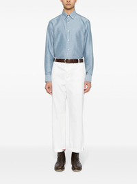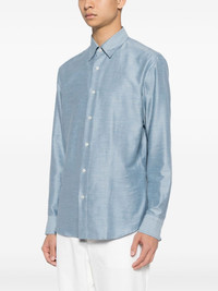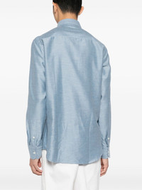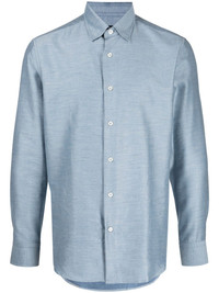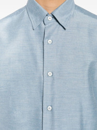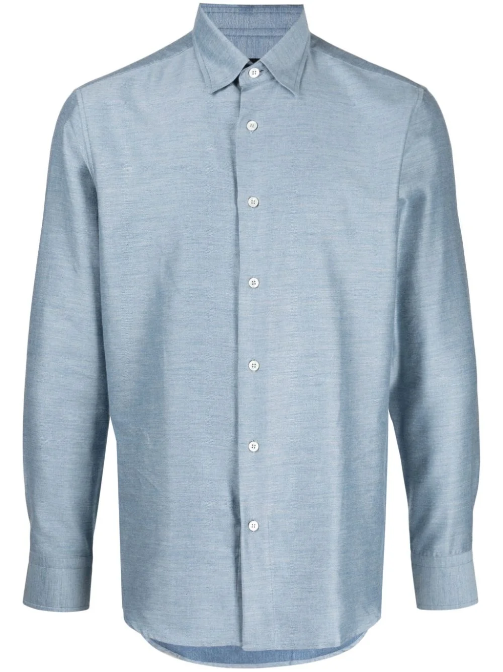 long-sleeve cotton-cashmere shirt Highlights - Blue - Cotton-cashmere blend - Pointed flat collar - Front button fastening - Long sleeves - Buttoned cuffs - Straight hem Made in Italy Composition Cotton 91%, Cashmere 9% SIZE & FIT Model measurements Height 6 ft 2 in(1.87 m) Bust/Chest 31.49 in(80 cm) Hips 37.79 in(96 cm) Waist 27.95 in(71 cm)