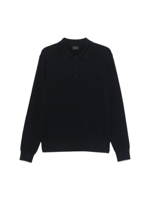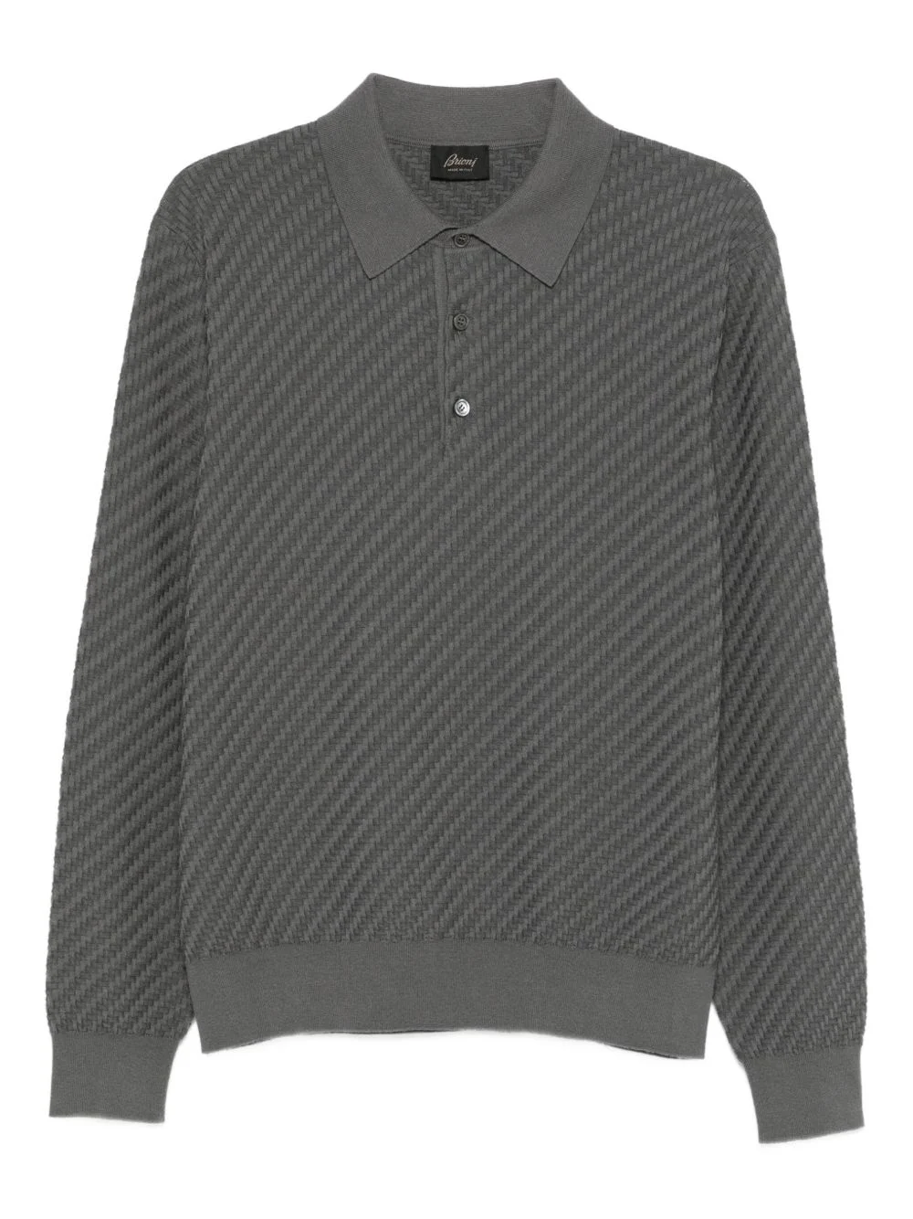 long-sleeve polo shirt Highlights - Grey - Textured knit - Long sleeves - Point collar - Front button fastening - Ribbed cuffs - Ribbed hem Made in Italy Composition Cotton 57%, Silk 34%, Cashmere 9% SIZE & FIT Model measurements Height 6 ft 2 in(1.88 m) Bust/Chest 36.61 in(93 cm) Hips 35.82 in(91 cm) Waist 27.95 in(71 cm) FittingInformation Designed for a regular fit, this polo shirt offers a comfortable loose fit throughout the body The ribbed hem offers a close, comfortable fit Made with a midweight knit, this piece offers some stretch