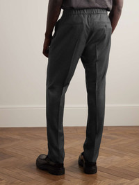 Brioni believes that comfort and sophistication can go hand in hand. These slim-fit 'Melbourne' trousers have been tailored in Italy from wool and finished with a partially elasticated waistband with an internal drawstring. Wear yours with a button-down and blazer or a casual polo shirt. Size & Fit - Fits true to size. Take your normal size - Those with muscular thighs may wish to take the next size up - Slim cut, mid-rise style - Partially elasticated at the waist - Unfinished hems; alter to fit - Lightweight, non-stretchy fabric - Model is shown wearing an IT 48 - Model measures: waist size 32, height 6'1"/ 185cm Details & Care - Charcoal wool - Two on-seam pockets, two back buttoned welt pockets, finished hems - Hook, button and zip fastening - 100% wool; lining: 50% cotton, 50% modal - Dry clean