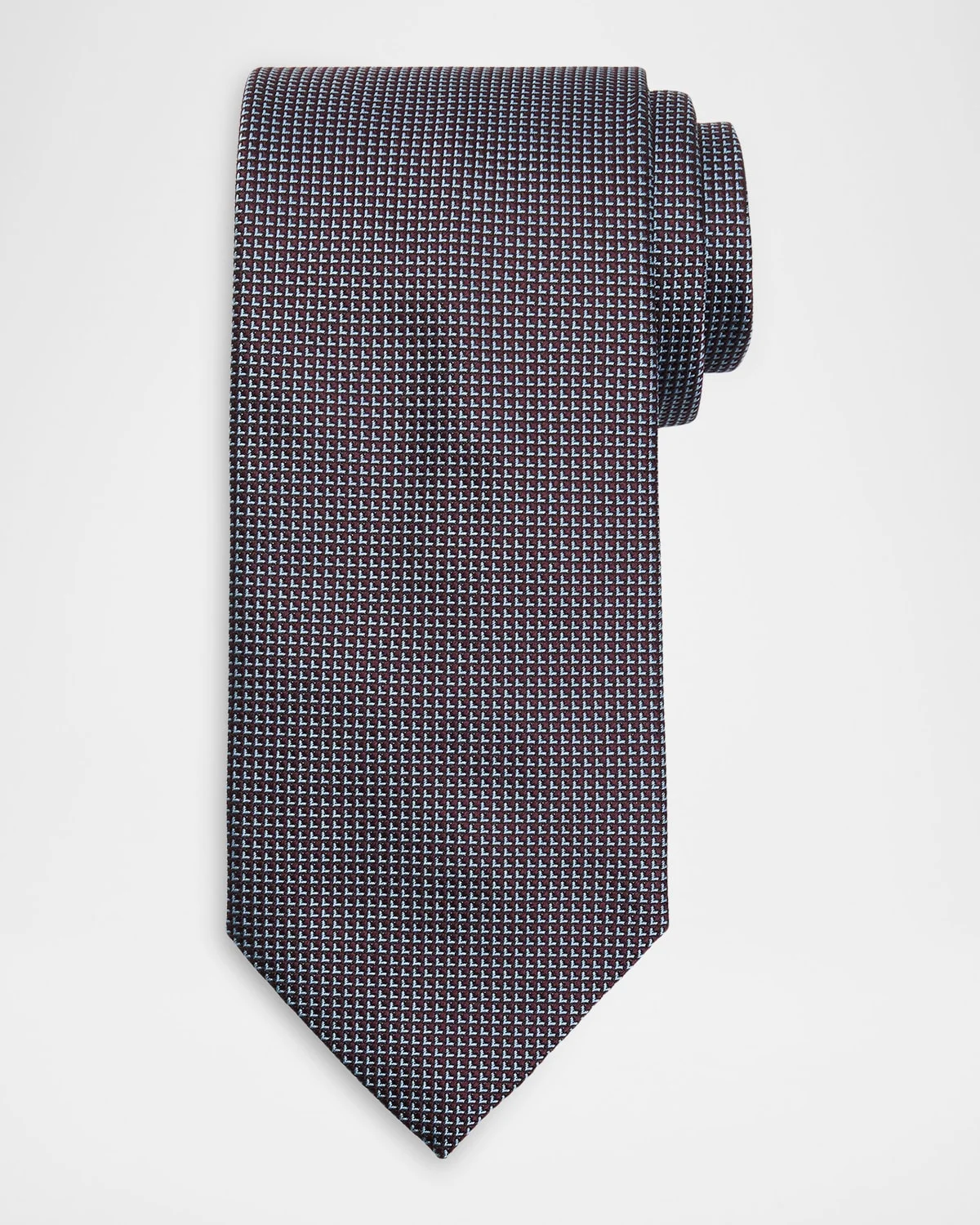 Men & apos;s Micro-Geometric Square Jacquard Silk Tie