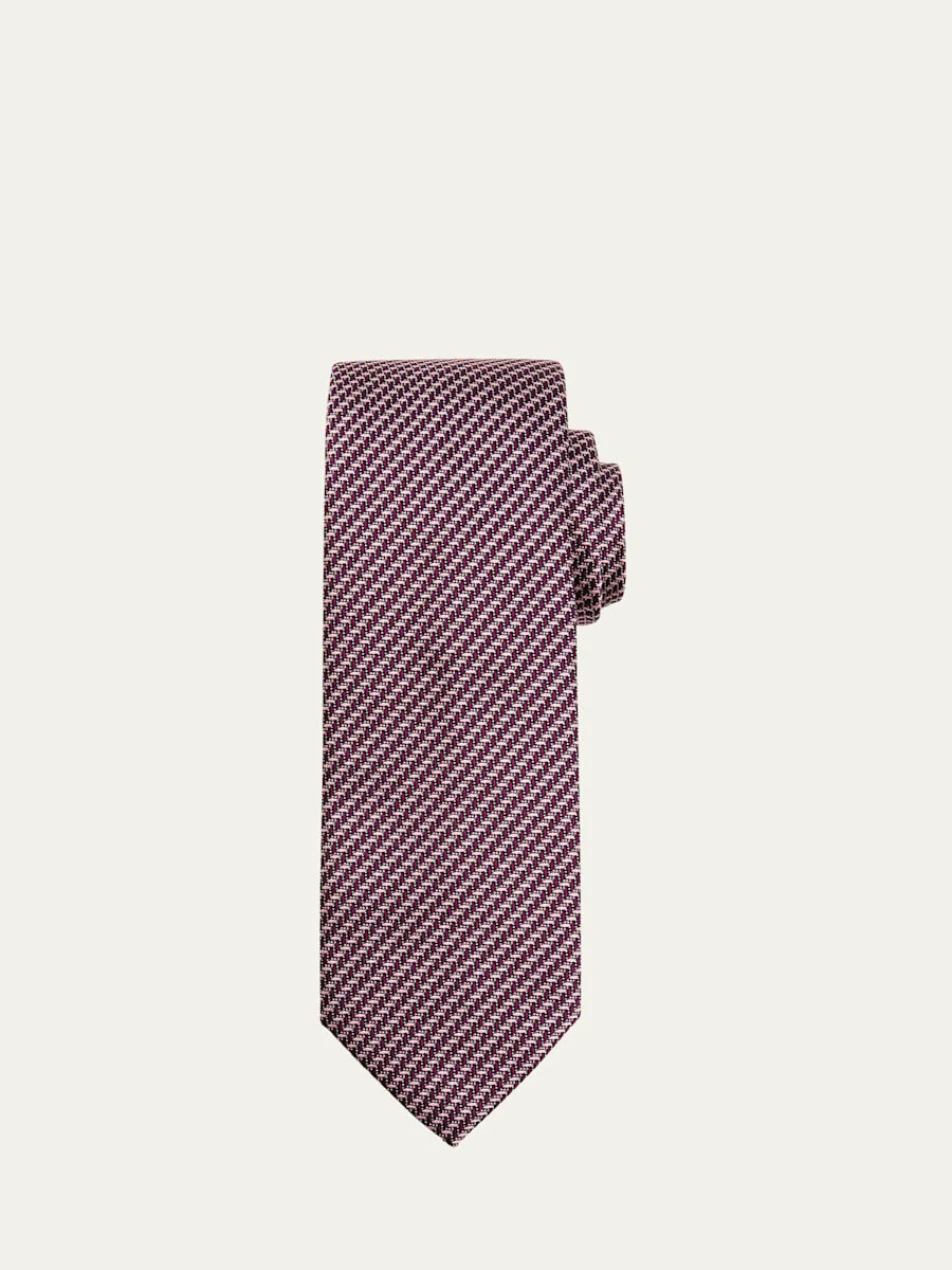 Brioni tie in luxurious silk accented with a woven bicolor chevron pattern Approx. 59"L x 2.8"W Silk Made in Italy Online Inquiries: BGS21_NDN1W| Store Inquiries: #5052294