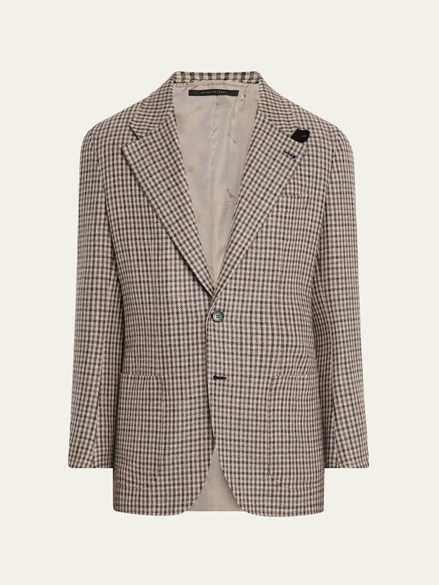 Brioni sport coat in tattersall check cashmere for a soft handfeel Notched lapels can be styled as a stand collar with throat latch Suede undercollar trim Single-breasted front Barchetta chest pocket Hip patch pockets Long sleeves Double-vented back Relaxed fit Cashmere Made in Italy Online Inquiries: BGS21_NDNGE| Store Inquiries: #5053871