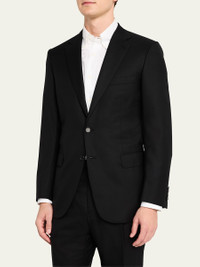 Brioni "Essential" two-piece suit. Notch lapel; two-button front. Lightly padded natural shoulder. Basted sleeves. Welt pocket at chest. Flap pockets at hips. Double-vented back. Includes matching flat-front trousers with straight leg. Unfinished hem to be tailored to desired length. Virgin wool; rayon lining; dry clean. Handmade in Italy. Model is 6'1"/185cm. Online Inquiries: BGS21_N6MX5| Store Inquiries: #3289167