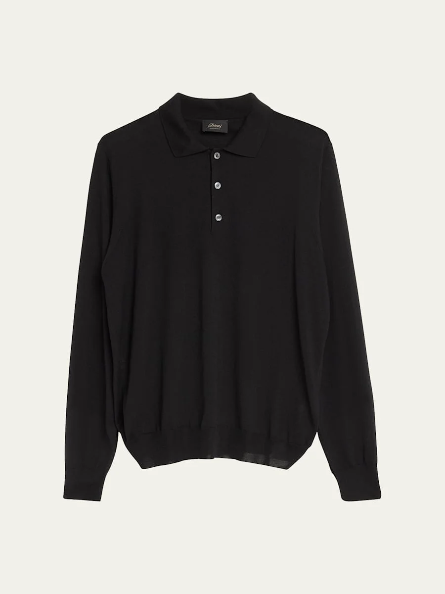 Men's Cashmere and Silk Long-Sleeve Polo Shirt