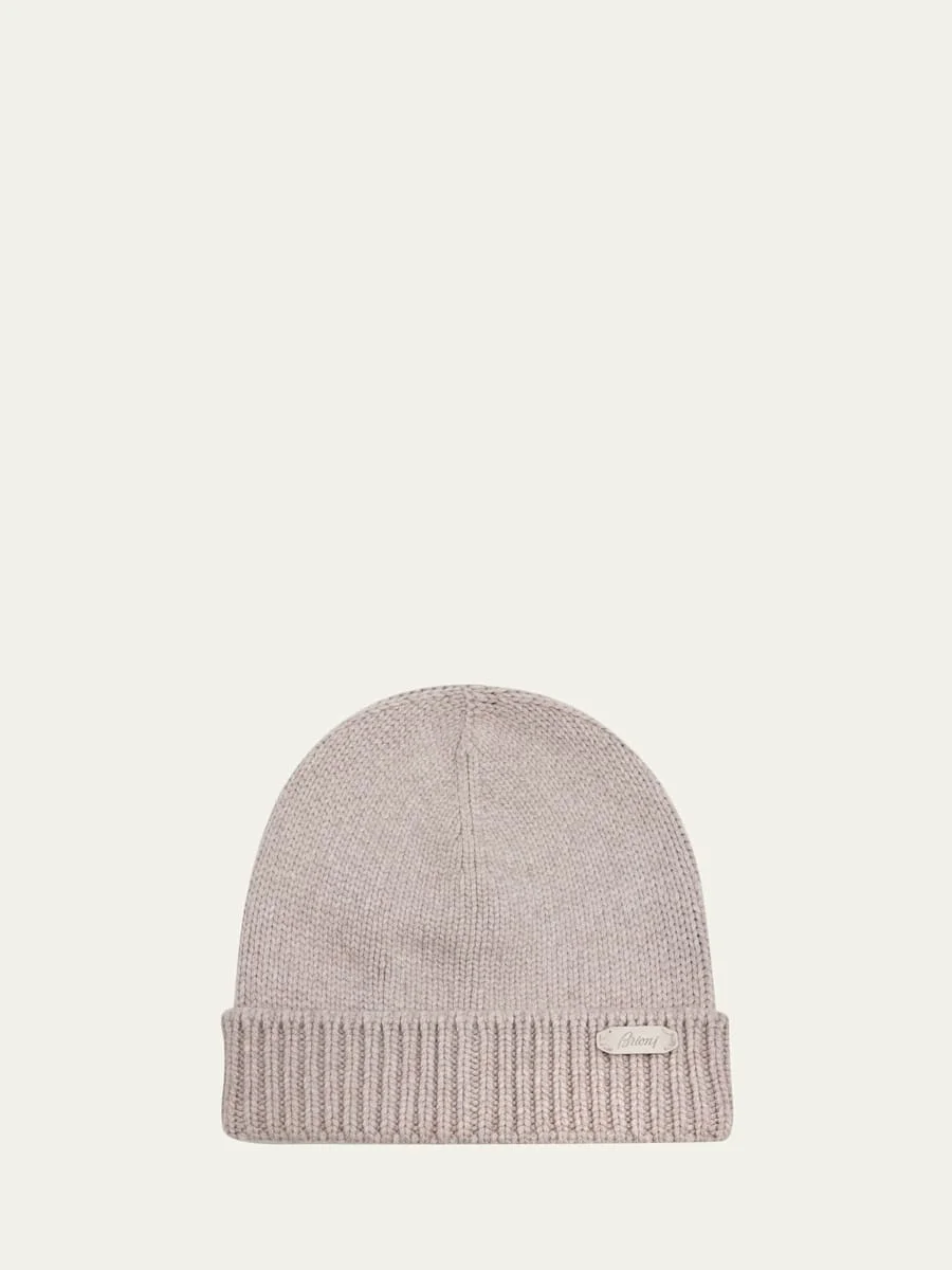 Men's Cashmere Knit Logo-Patch Beanie