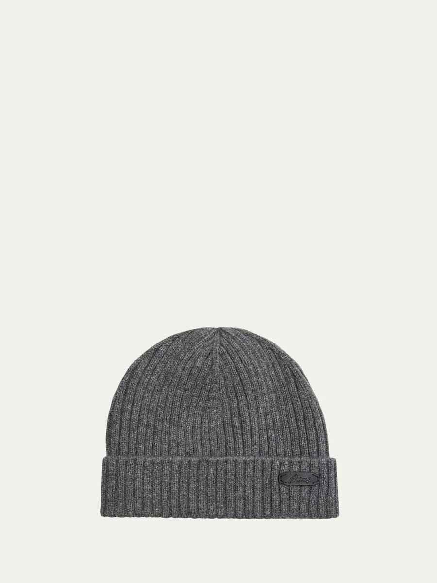 Men's Cashmere Rib Leather-Label Beanie Hat