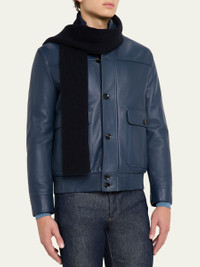 Men's Cashmere Rib Leather-Label Scarf