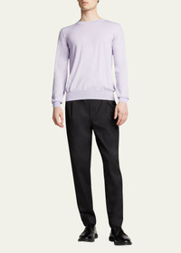 Brioni sweater. Crew neckline. Long sleeves. Ribbed cuffs and hem. Pullover style. Wool. Made in Italy. Model is 6'1"/185cm. Online Inquiries: BGS21_N81YH| Store Inquiries: #4048586