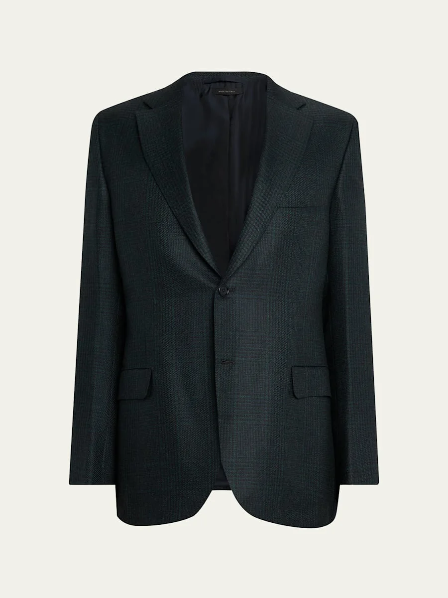 Men's Cashmere Tonal Plaid Single-Breasted Sport Coat