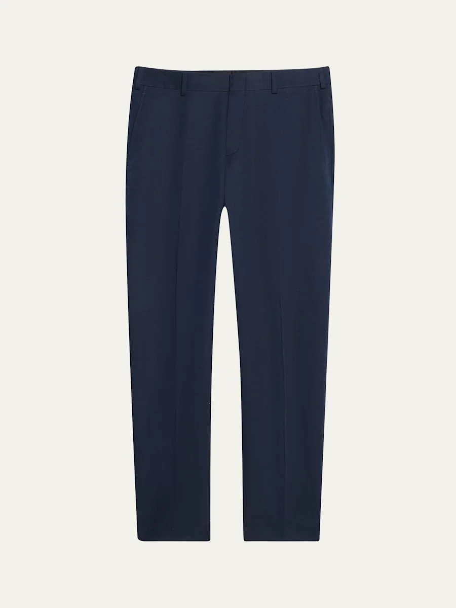 Brioni trousers in linen and cotton gabardine Regular rise Flat front Side slip pockets Buttoned besom back pockets Fitted through straight legs Hook-zip front; belt loops Full length Linen/cotton Made in Italy Online Inquiries: BGS21_NCUH4| Store Inquiries: #4953585