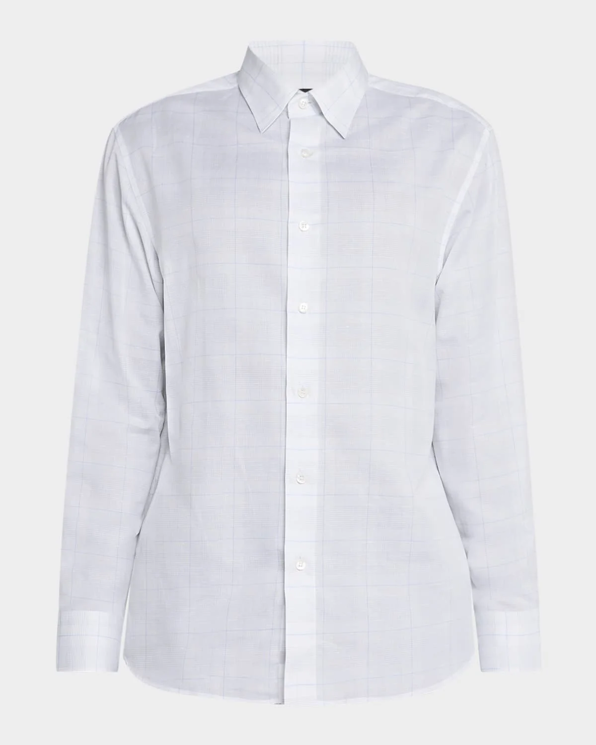 - Brioni sport shirt in lightweight cotton and linen with a plaid grid check - Point collar - Button placket - Long sleeves - Round barrel cuffs - Back yoke - Shirttail hem - Modern fit - Cotton/linen - Dry clean - Made in Italy