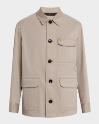 - Brioni workwear jacket featuring three functional flap pockets on the front - B-logo tab on the chest pocket for discreet branding - Shirt collar - Button front - Long sleeves - Mitered barrel cuffs - Vented sides - Cotton/wool - Dry clean - Made in Italy