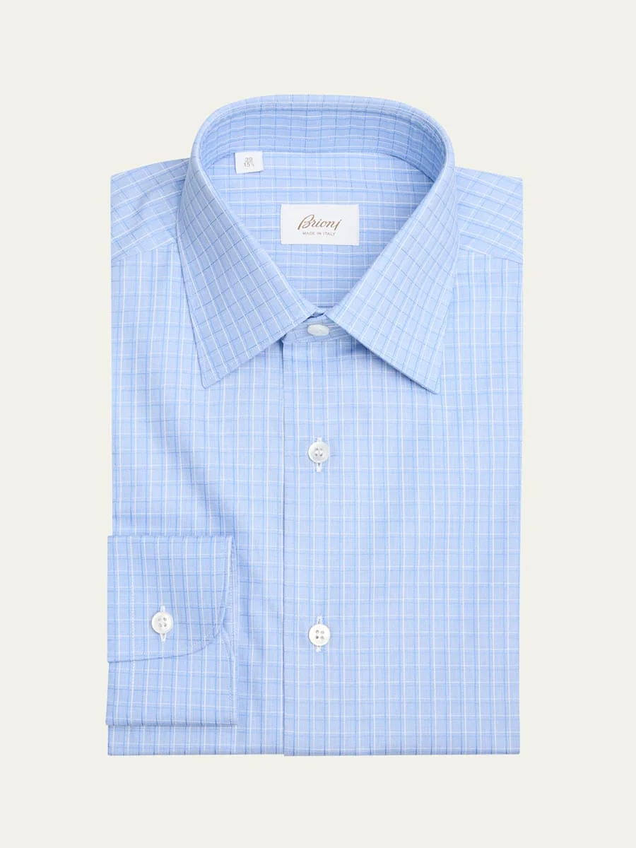 Brioni dress shirt in cotton featuring a check print Point collar Button placket Long sleeves Round barrel cuffs Shirttail hem Cotton Made in Italy Online Inquiries: BGS21_NCSVL| Store Inquiries: #4944434