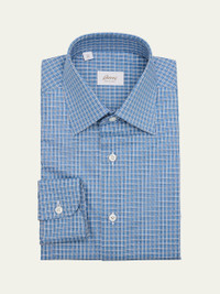 Brioni dress shirt in breathable cotton adorned with a graphcheck pattern Point collar Button placket Long sleeves Round barrel cuffs Shirttail hem Cotton Made in Italy
