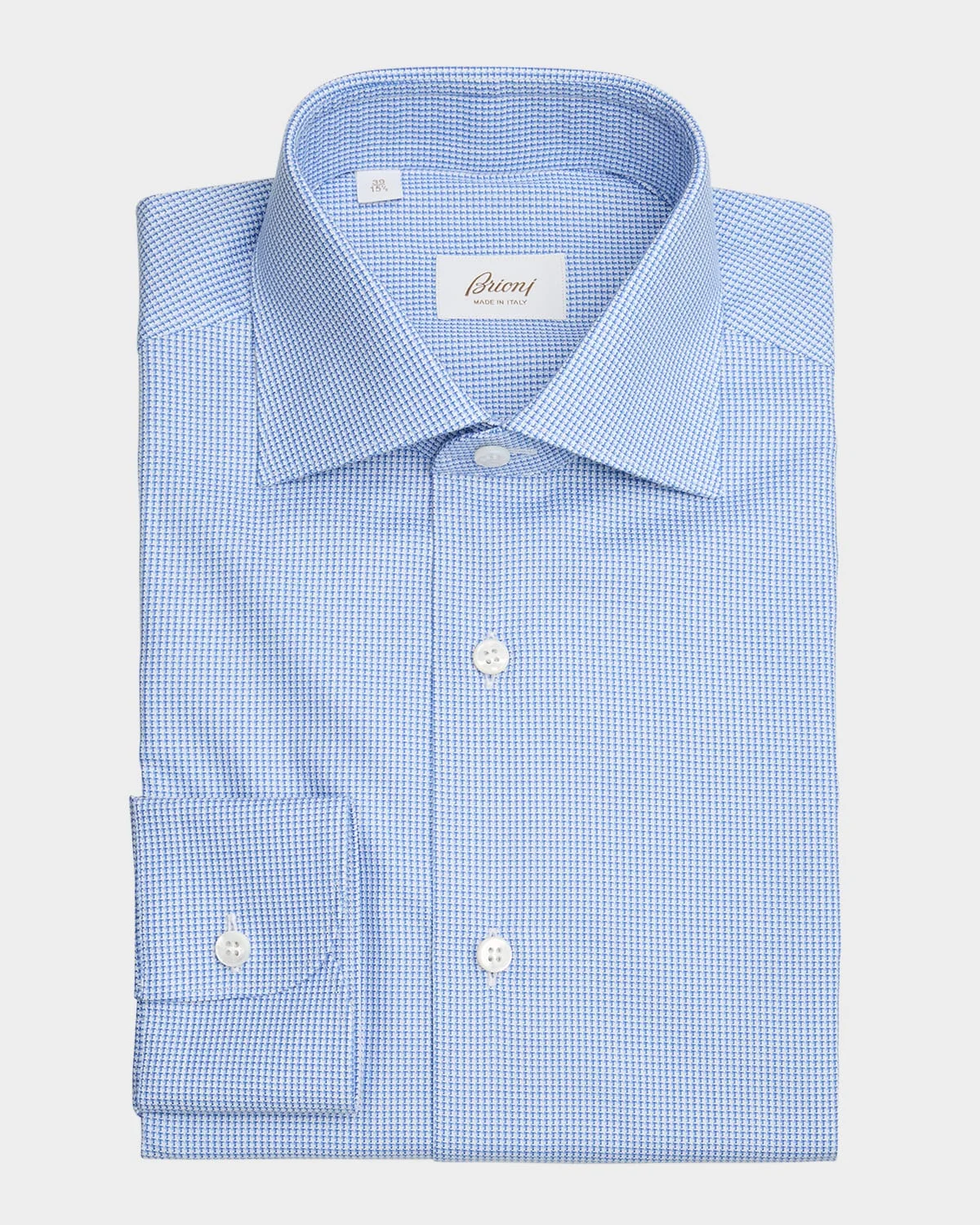 - Brioni dress shirt featuring a micro-houndstooth print - Point collar - Button placket - Long sleeves - Round barrel cuffs - Shirttail hem - Modern fit - Cotton - Dry clean - Made in Italy