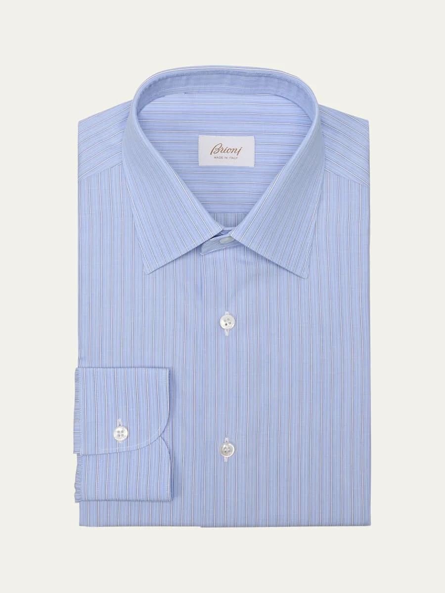 Brioni dress shirt in cotton with a mini graph check Point collar Button placket Long sleeves Round barrel cuffs Shirttail hem Cotton Made in Italy Model is 6'1"/185cm. Online Inquiries: BGS21_NC7KP| Store Inquiries: #4825408