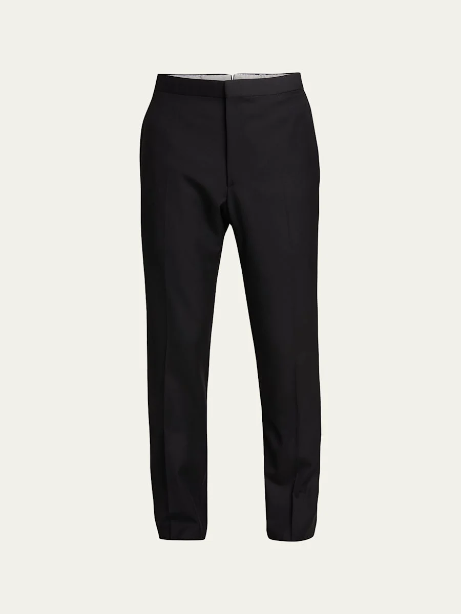 Brioni tuxedo pants. Side slash pockets; back button-welt pocket. Straight legs. Concealed closure/zip fly; belt loops. Cotton. Made in Italy. Model is 6'1"/185cm. Online Inquiries: BGS21_N83PA| Store Inquiries: #4054406