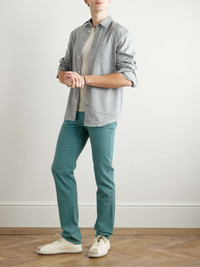 Whether it's bespoke tailoring or casual staples, Brioni designs with a certain level of refinement. These 'Meribel' jeans have been made in Italy from slightly stretchy denim in a slim, straight fit that works nicely with loafers or low-tops. Complement the teal wash with neutrals. Size & Fit - Fits true to size, however those who are between sizes should take the larger size - Slim-straight leg, mid-rise style - Mid-weight, slightly stretchy fabric - Model is shown wearing a 32 - Model measures: waist size 30, height 6'2"/ 188cm Details & Care - Teal denim - Button and zip fastening - 98% cotton, 2% elastane - Machine wash