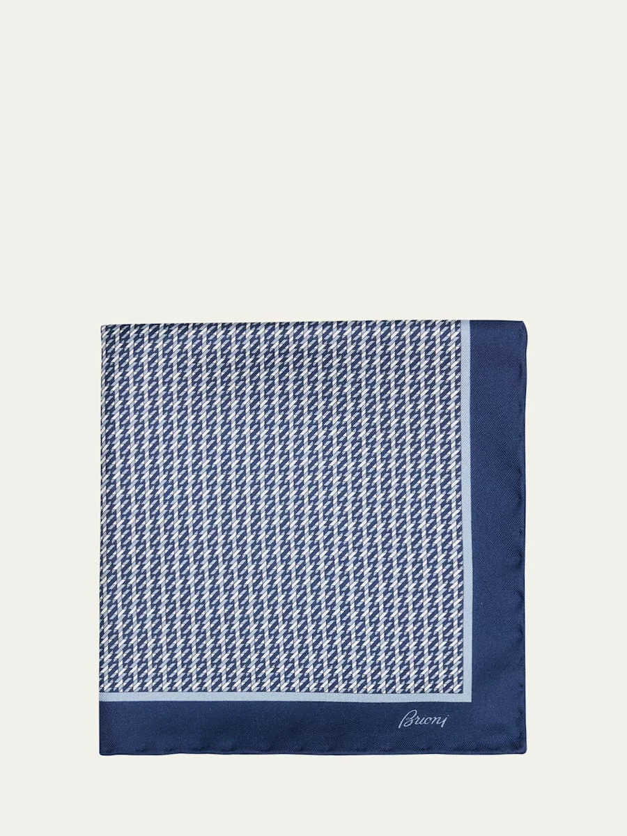 Brioni pocket square in lustrous silk presenting a geometric zig-zag print Approx. 13"L x 13"W Contrast border detailing Logo signature on the corner Silk Made in Italy Online Inquiries: BGS21_NDNQQ| Store Inquiries: #5055811
