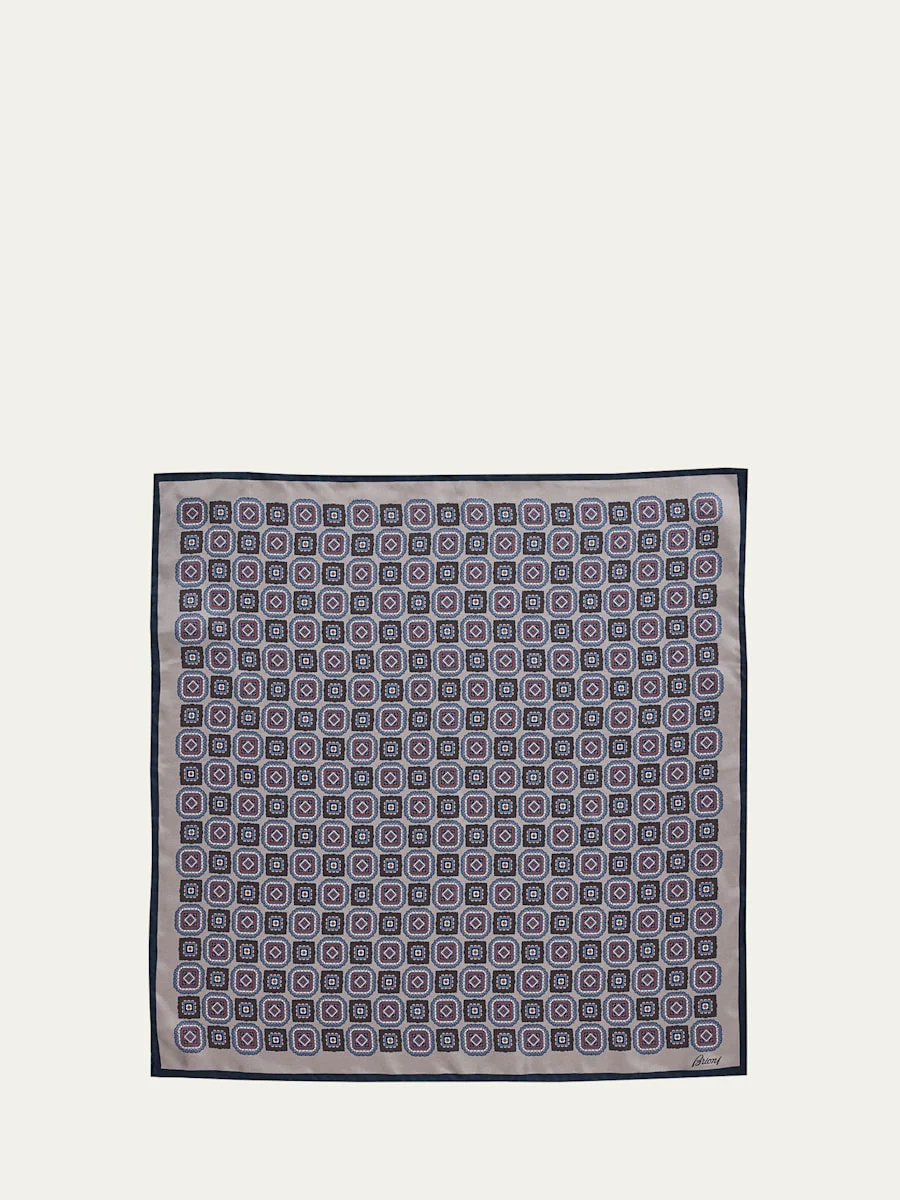 Men's Medallion Print Silk Pocket Square