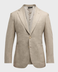 - Brioni blazer in melange twill - Notched lapels - Two-button closure - Chest welt pocket - Side patch pockets - Unfinished sleeves - Double-vented back - Silk/wool - Dry clean - Made in Italy - Model is 6'1"/185cm.