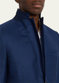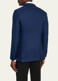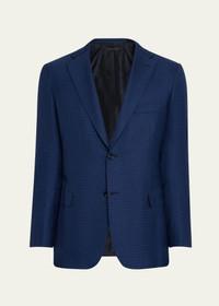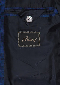 Brioni sport coat in micro houndstooth Notch lapels Two-button closure Chest welt pocket Hip flap pockets Unfinished sleeves Double-vented back Cashmere/silk Made in Italy Online Inquiries: BGS21_NCSYC| Store Inquiries: #4945264