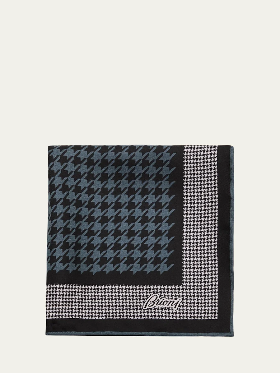 Brioni pocket square in lustrous silk presenting a timeless twotone houndstooth print Approx. 13"L x 13"W Contrast border detailing Logo signature on the corner Silk Dry clean Made in Italy