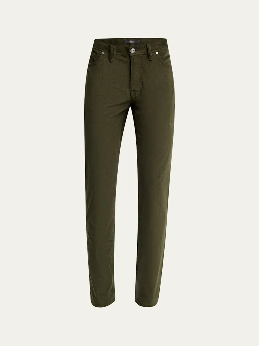 Brioni "Pinwale" pants in solid cotton-stretch fabric Regular rise Flat front Five-pocket style Straight legs Full length Button-zip front; belt loops Cotton/elastane Dry clean Made in Italy Model is 6'1"/185cm. Online Inquiries: BGS21_NDQXA| Store Inquiries: #4808305