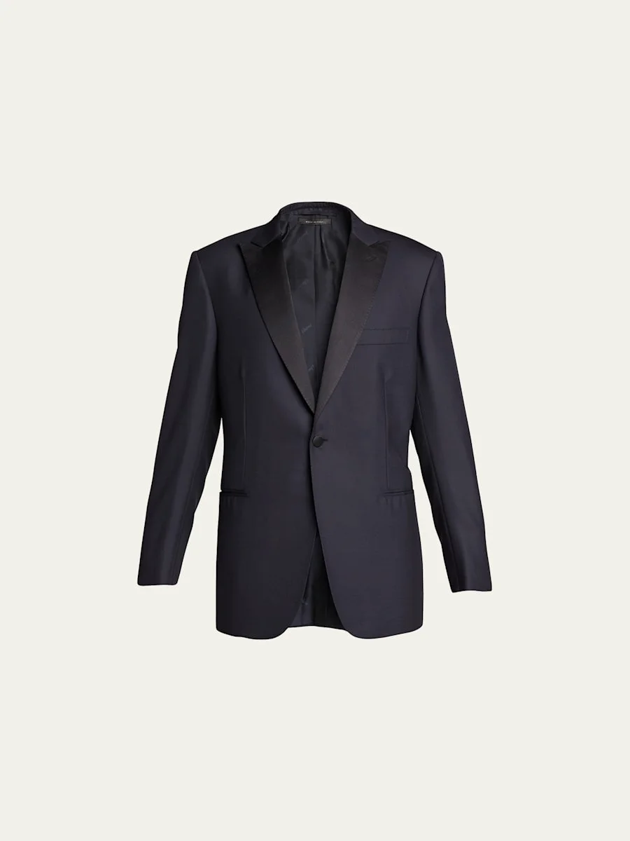 Brunello Cucinelli "Policleto" traditional tuxedo Wool Dry clean only Made in Italy Jacket: Peaked lapels; single-button front Chest and side welt pockets Four-button cuffs Trousers: Regular rise Flat front Side slip pockets Back welt pockets Full length with creasing Button/zip fly; belt loops Unfinished hem to be tailored to desired length Model is 6'1"/185cm. Online Inquiries: BGS21_N8TPU| Store Inquiries: #4215771