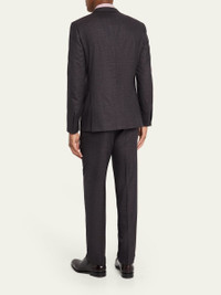 Brioni two-piece suit in premium wool highlighted with a subtle Prince of Wales check Classic fit Wool Made in Italy Jacket: Notched lapels Single-breasted front Chest welt pocket Hip flap pockets Internal breast pocket Double-vented back Pants: Regular rise Side slip pockets Tapered legs Extended button-zip front; belt loops Online Inquiries: BGS21_NDNGB| Store Inquiries: #5053868