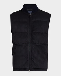 - Brioni vest in quilted suede - Baseball collar - Two-way zip front - Side welt pockets - Sleeveless - Polyester fill - Leather - Dry clean - Made in Italy - Model is 6'1"/185cm.