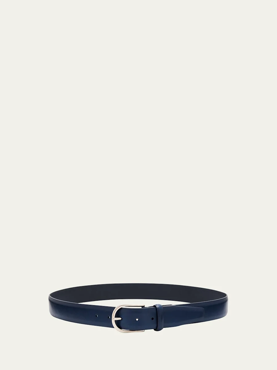 Brioni belt defined by a rounded silvertone pin buckle Approx. 1.4"W Leather loop Adjustable fit Leather Made in Italy Online Inquiries: BGS21_NDNN5| Store Inquiries: #5055312