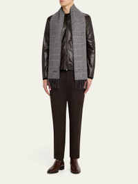 Men's Silk and Cashmere Double-Face Houndstooth Plaid Scarf