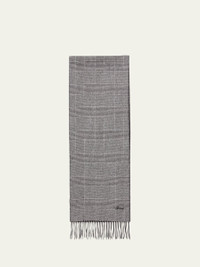 This sumptuous silk and cashmere Brioni scarf offers versatility with a solid to glen plaid reversible design. Approx. 70.866"L x 11.811"W Embroidered logo signature Fringe ends Silk/cashmere Made in Italy