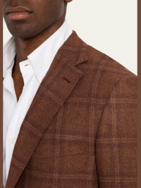 Brioni sport coat in silk and cashmere with a tonal plaid print revealing a sumptuous handfeel Notched lapels Singlebreasted front Barchetta chest pocket Hip flap pockets Internal breast pocket Long sleeves Doublevented back Silk/cashmere Made in Italy