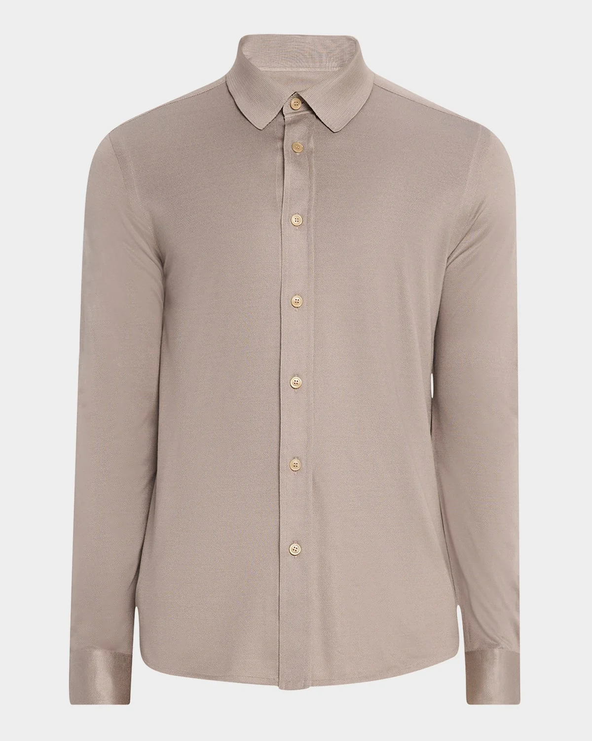 - Brioni sport shirt in silk pique fabric - Point collar - Button placket - Long sleeves - Mitered barrel cuffs - Modern fit - Silk - Dry clean - Made in Italy