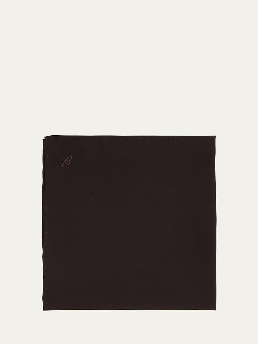 Men's Silk Poplin Embroidered Monogram Pocket Square