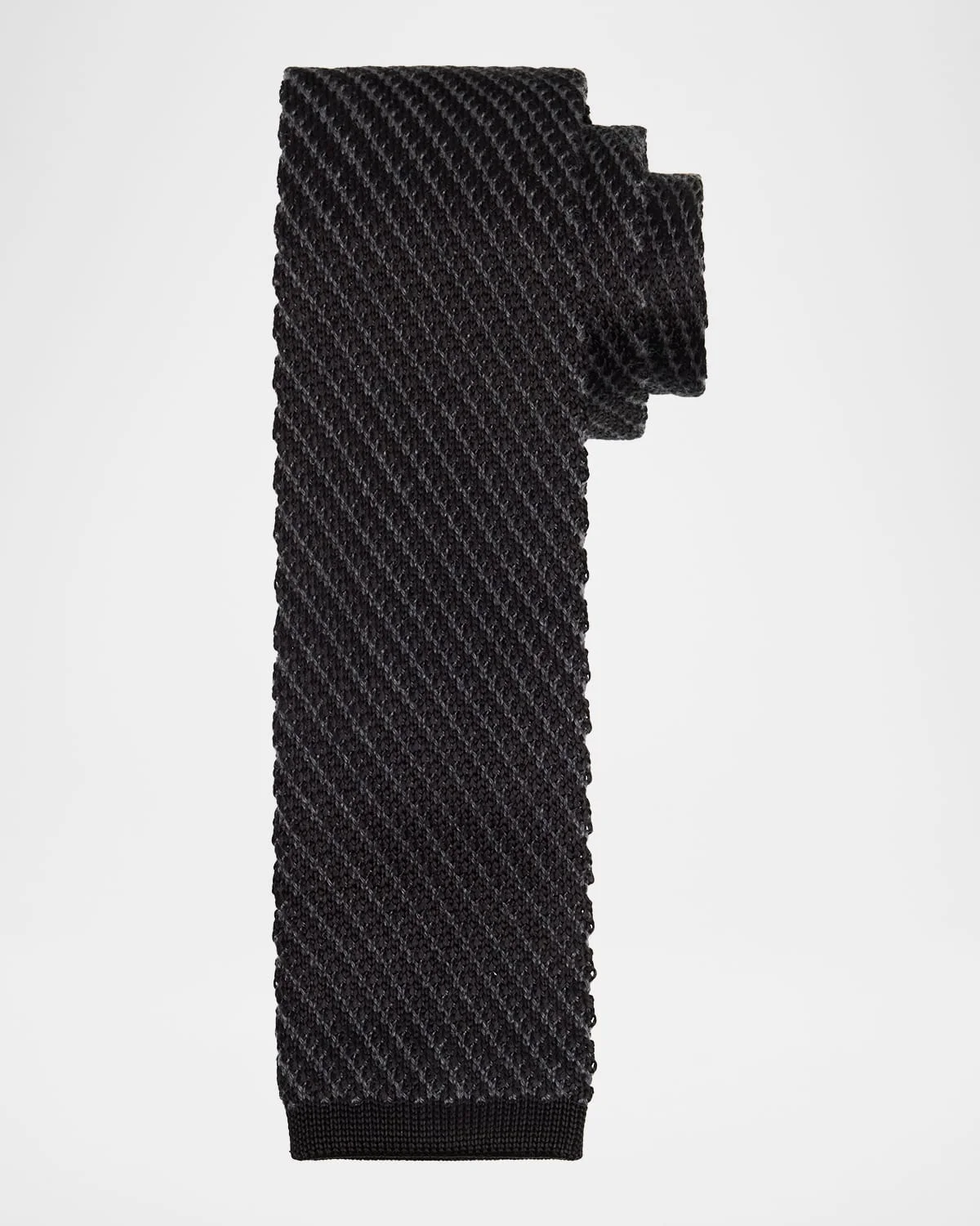 This lustrous silk knit tie from Brioni offers a diagonal geometric grid pattern for a unique texture and versatile style. Can be styled for both formal and casual wear Slim profile Silk Dry clean Made in Italy