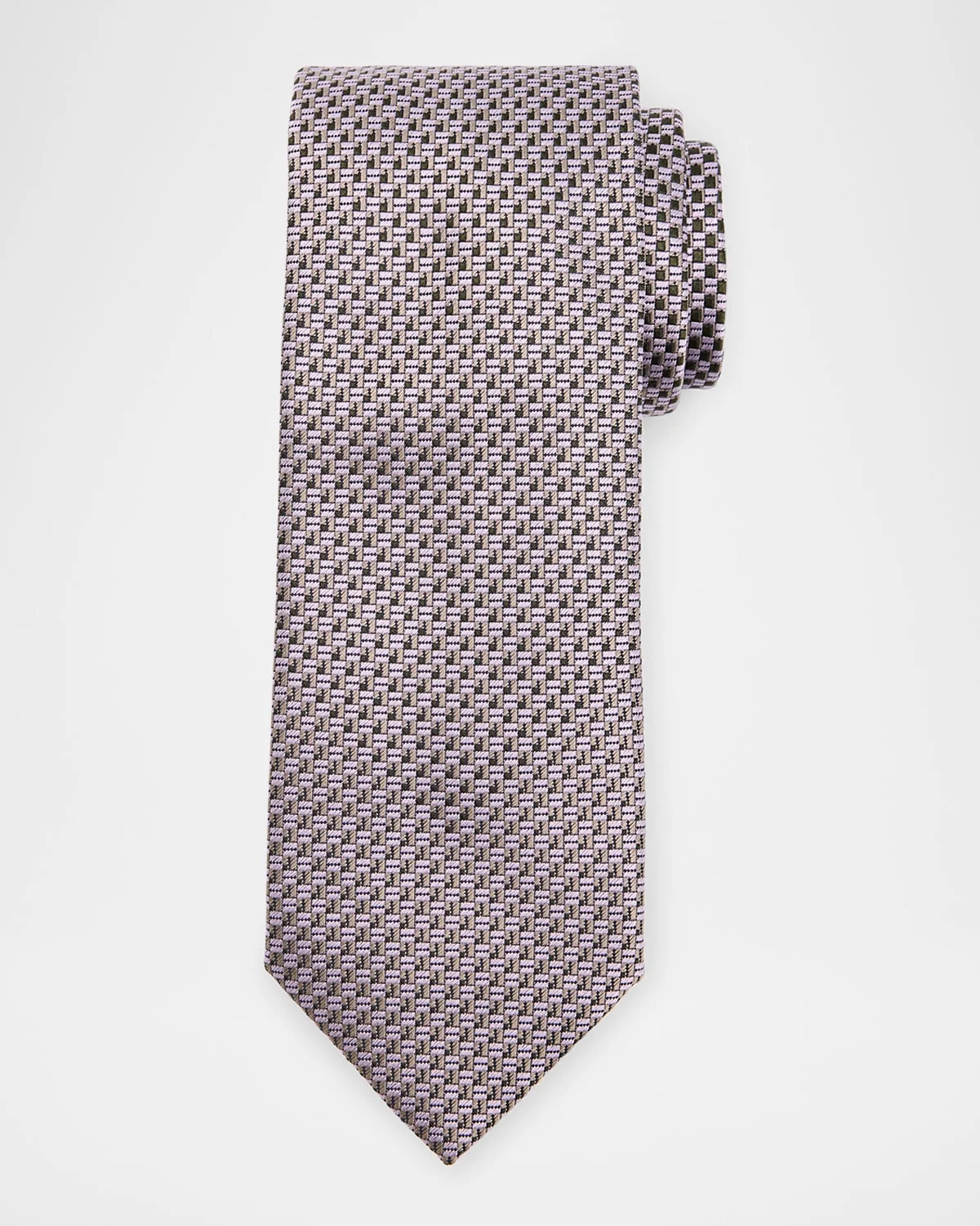 - Brioni tie in silk with a staggered box pattern - Self-tie style - Silk - Dry clean - Made in Italy