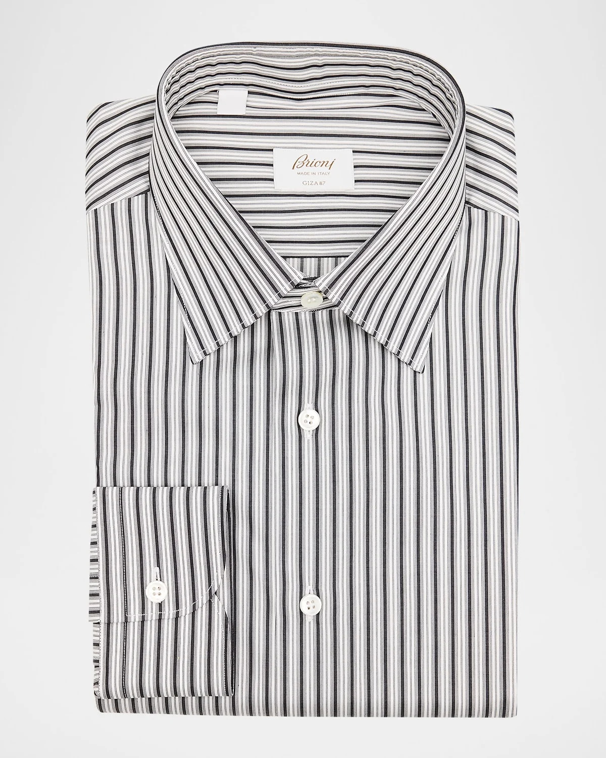 Brioni sport shirt is crafted from crisp cotton poplin with a striped motif Point collar; button front Long sleeves; button cuffs Regular fit Shirttail hem Cotton Dry clean Made in Italy