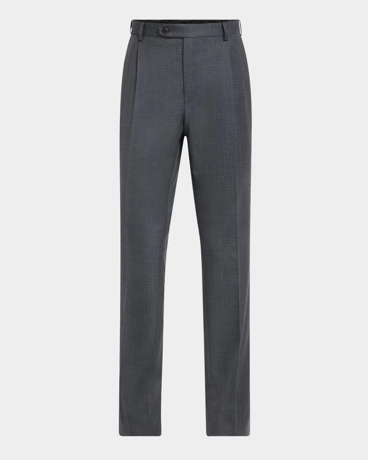 - Brioni dress trousers crafted in textured wool - Regular rise - Pleated front - Zip fly with button-tab closure - Side slip pockets - Back welt pockets - Full length - Regular fit - Wool - Dry clean - Made in Italy