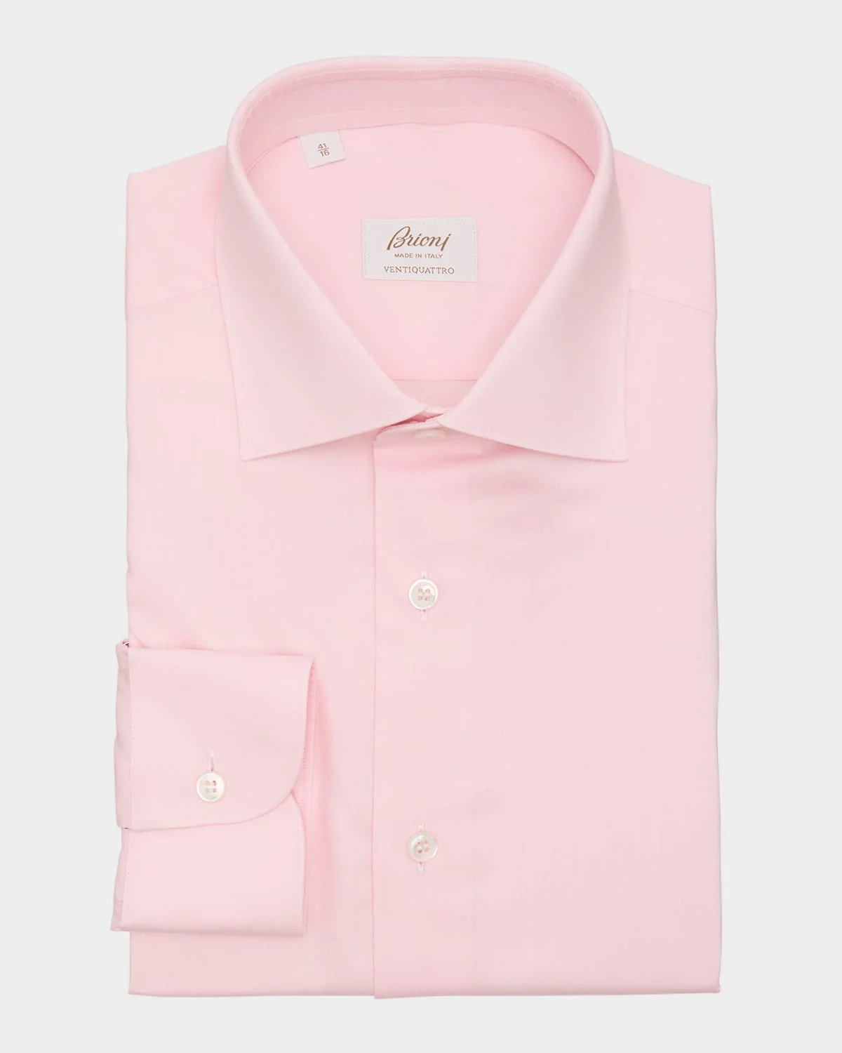 - Brioni formal shirt crafted from Ventiquattro cotton and accented with pearlescent buttons - Ventiquattro is exclusively developed from superior-quality fabric, crease-resistant to guarantee a smooth finish after hours of wear. The fabric is soft on the skin and comfortable with a light stretch. - Point collar - Button placket - Long sleeves - Round barrel cuffs - Shirttail hem - Cotton - Dry clean - Made in Italy