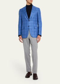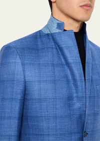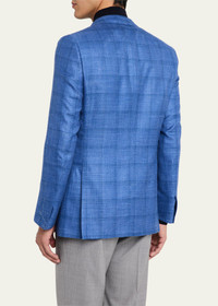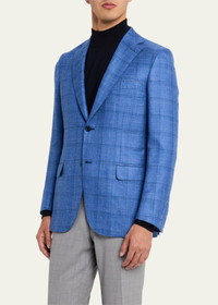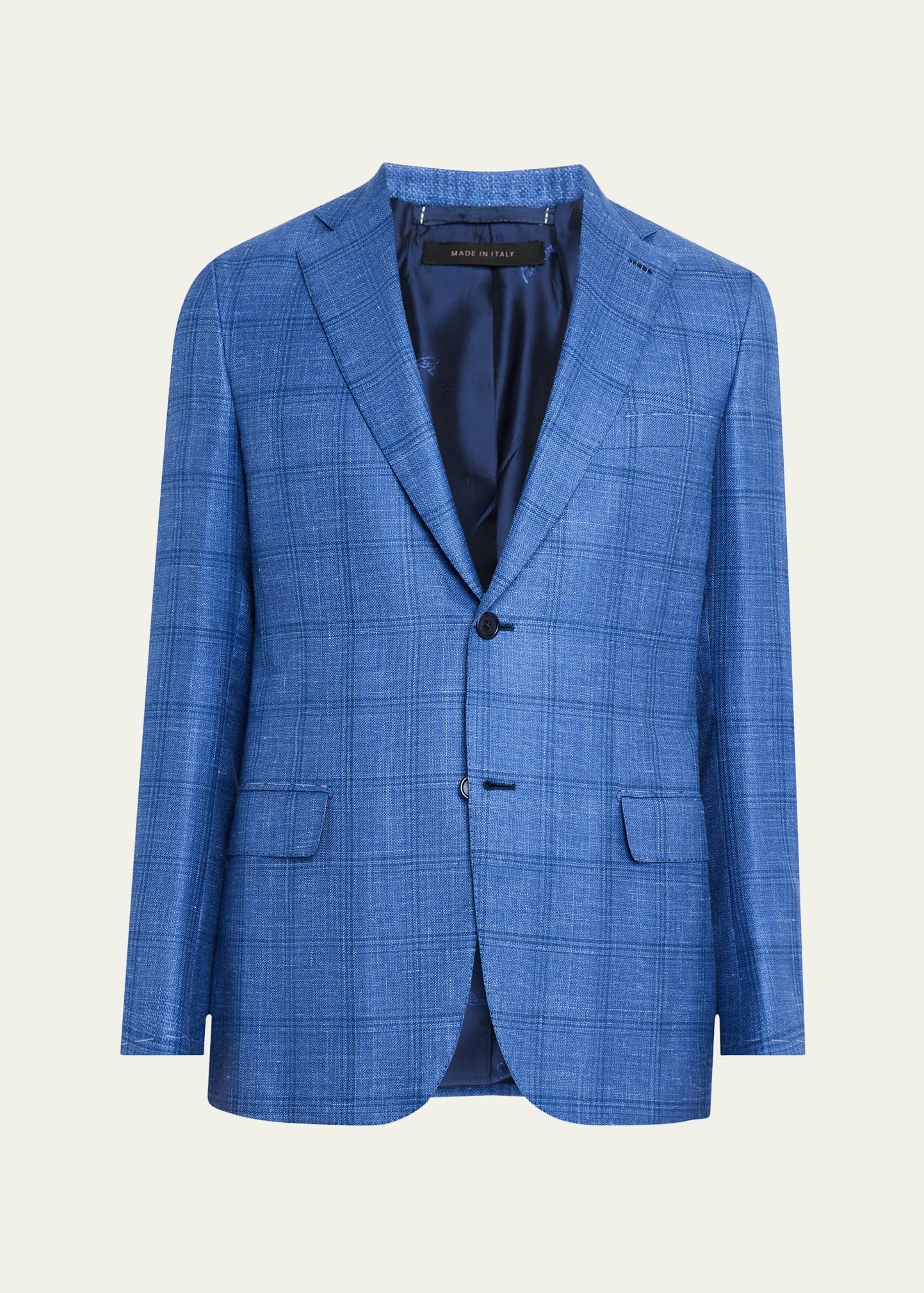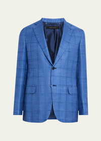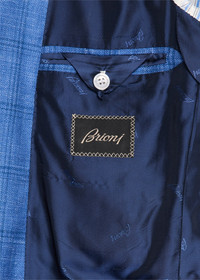 Brioni sport coat in windowpane check Notched lapels Two-button closure Chest welt pocket Hip flap pockets Unfinished sleeves Double-vented back Wool/silk/cashmere Dry clean Made in Italy Online Inquiries: BGS21_NCRGR| Store Inquiries: #4936074