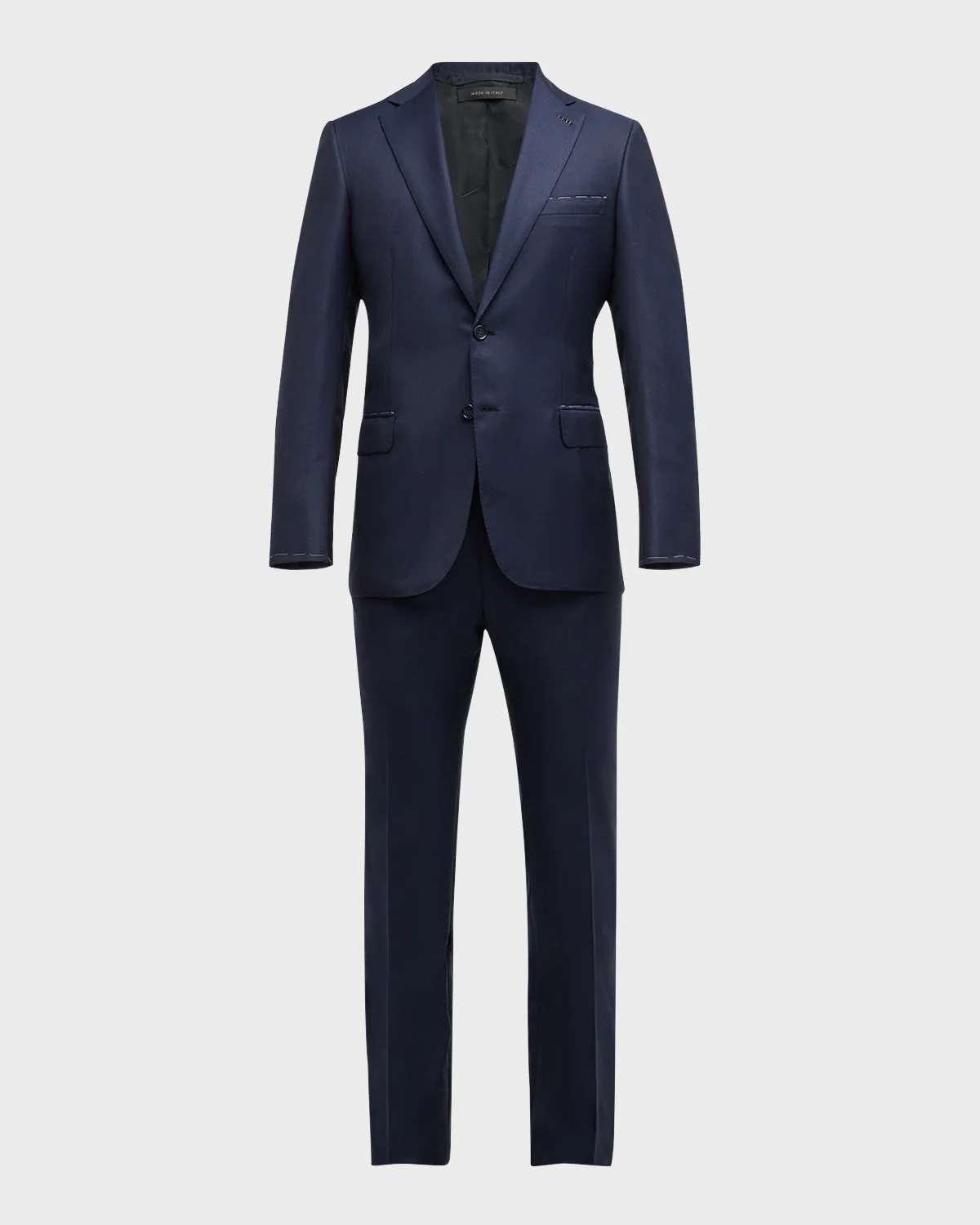 - Brioni suit in subtle windowpane check pattern - Notched lapels - Two-button silhouette - Chest welt pocket - Side flap pockets - Unfinished sleeves - Double-vented back - Darted trousers - Straight legs - Wool - Dry clean - Made in Italy - Model is 6'1"/185cm.