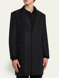 Men's Wool Chevron Single-Breasted Overcoat
