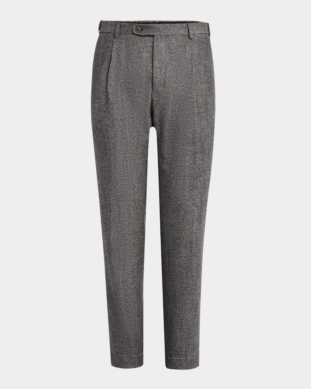 - Brioni trousers crafted of wool flannel - Regular rise - Zip fly with extended button closure - Pleated front - Side slip pockets - Back welt pockets - Full length - Straight legs - Dry clean - Made in Italy - Model is 6'1"/185cm.