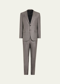 Brioni suit in tonal plaid Wool/silk Made in Italy Jacket: Notch lapels; buttonhole at left lapel Two-button closure Chest welt pocket Hip flap pockets Interior welt pocket Unfinished sleeves Double-vented back Trousers: Regular rise Darted front Side slip pockets Back welt pockets Full length Unfinished hem to be tailored to desired length Online Inquiries: BGS21_NCSNA| Store Inquiries: #4943518